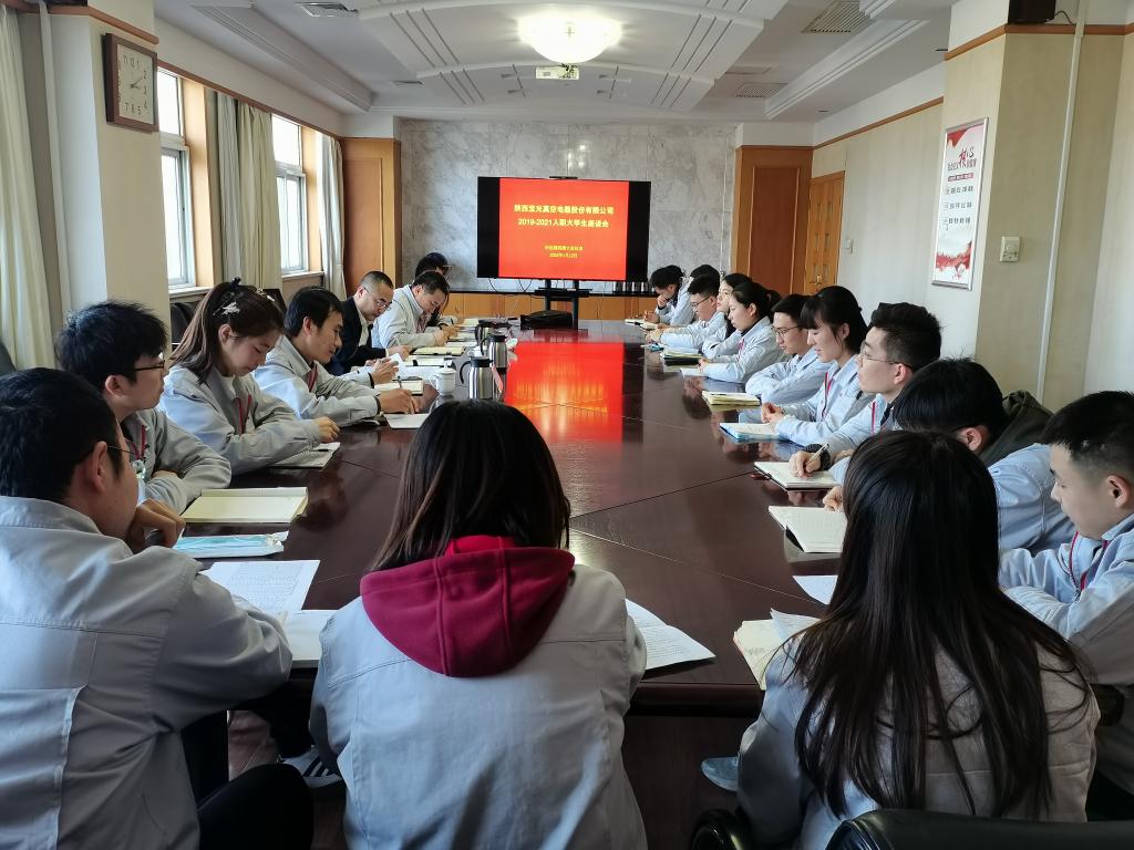 2022年1月12日下午,寶光股份組織召開2019-2021入職大學(xué)生座談會(huì)。公司黨委書記、總經(jīng)理謝洪濤,副總經(jīng)理張軍,總工程師岳永學(xué)參加了座談。