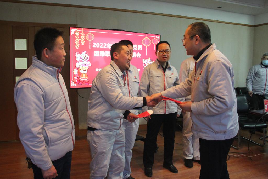 付宗喜向與會困難黨員和困難職工介紹了2021年度公司生產(chǎn)經(jīng)營情況和取得的成績,新的一年企業(yè)面臨的挑戰(zhàn),同時,企業(yè)沒有忘記任何一位生活中暫時存在困難的職工。這深深的鼓舞和激勵了與會人員,他們紛紛發(fā)言交流,表達對公司黨委的感謝之情,并愿意投身企業(yè)建設,在各自崗位上兢兢業(yè)業(yè)、努力工作,盡個人的綿薄之力為企業(yè)發(fā)展做出貢獻難。謝洪濤向與會人員一年來在不同崗位上做出的貢獻表示感謝,并將慰問金送到大家的手中,表達了公司黨委的誠摯問候和新春祝福,鼓勵他們要增強生活信心、努力干好工作;公司黨委是大家堅強的后盾,企業(yè)在穩(wěn)步發(fā)展、我們的生活也會越來越好、每個人都應該自強不息、不懈奮斗,做企業(yè)高質(zhì)量發(fā)展的參與者、見證者。