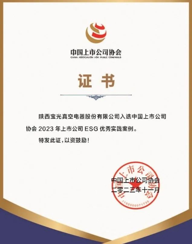 后續(xù),中國上市公司協(xié)會將匯編形成《中國上市公司ESG最佳實踐案例2023》在可持續(xù)發(fā)展大會上發(fā)布。獲評優(yōu)秀ESG實踐案例,充分展現(xiàn)了寶光股份在完善ESG治理體系、貫徹綠色發(fā)展理念、履行社會責(zé)任等方面的優(yōu)秀做法。